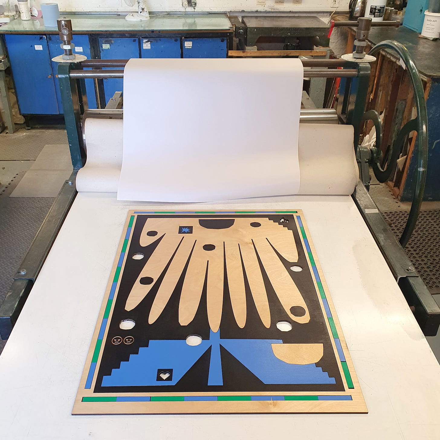 The icons - some of them are emojis - also feature on the giant hand painted tarpaulins that they will be exhibiting in the Crypt underneath St Luke’s, one of the exhibition spaces that Sample-Studios has access to.